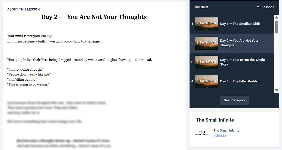 Go through the program, follow the daily shifts, and notice how your thoughts start to quiet and your focus returns.